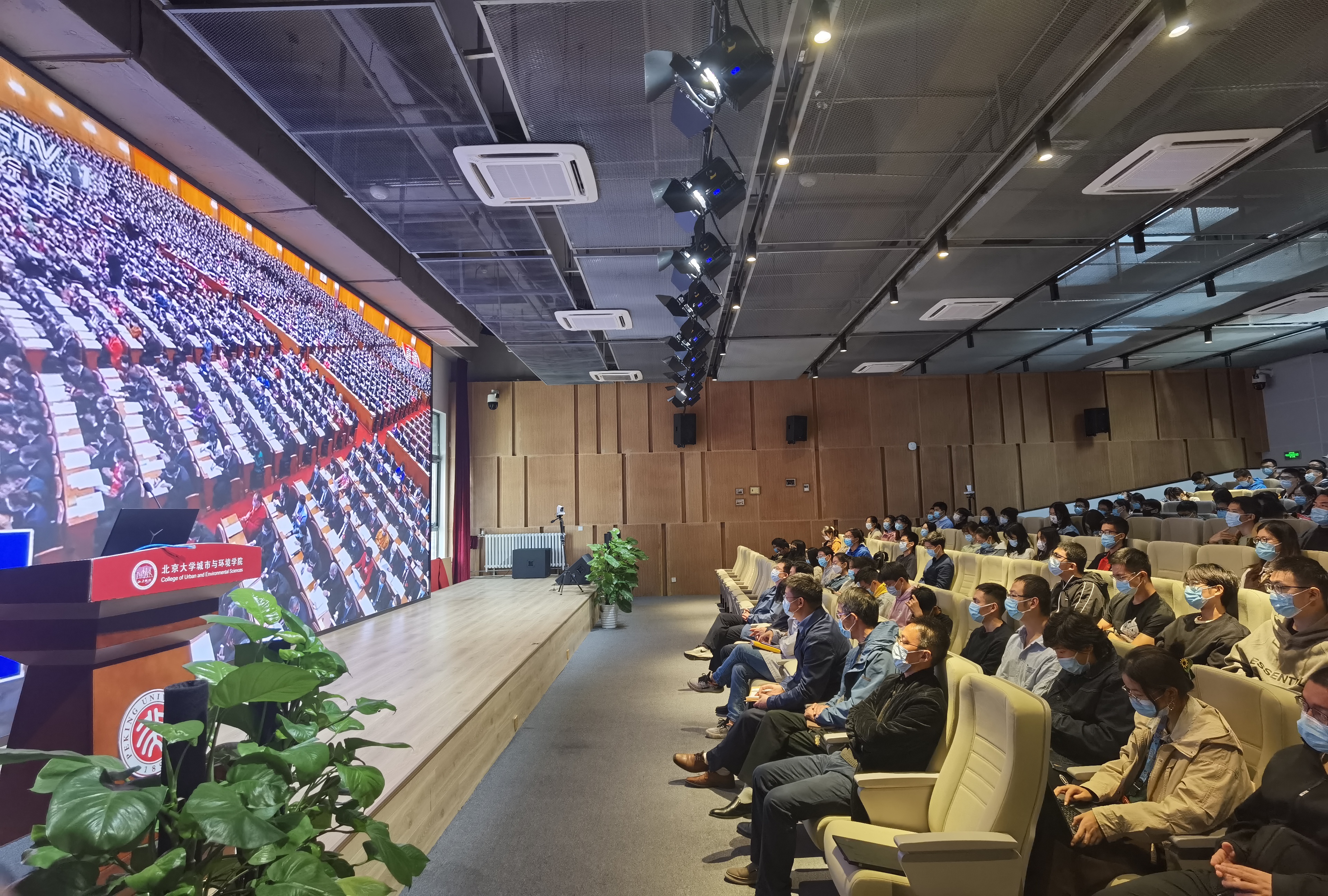 在主会场城市与环境学院大楼303报告厅,城市与环境学院党委书记彭建、院长贺灿飞、副院长曹广忠、副院长王志恒党委副书记陈耀华、党委副书记张新平等党政班子成员,部分师生党员、民主党派代表、团校全体学员集中观看学习了中国共产党第二十次全国代表大会开幕式。
