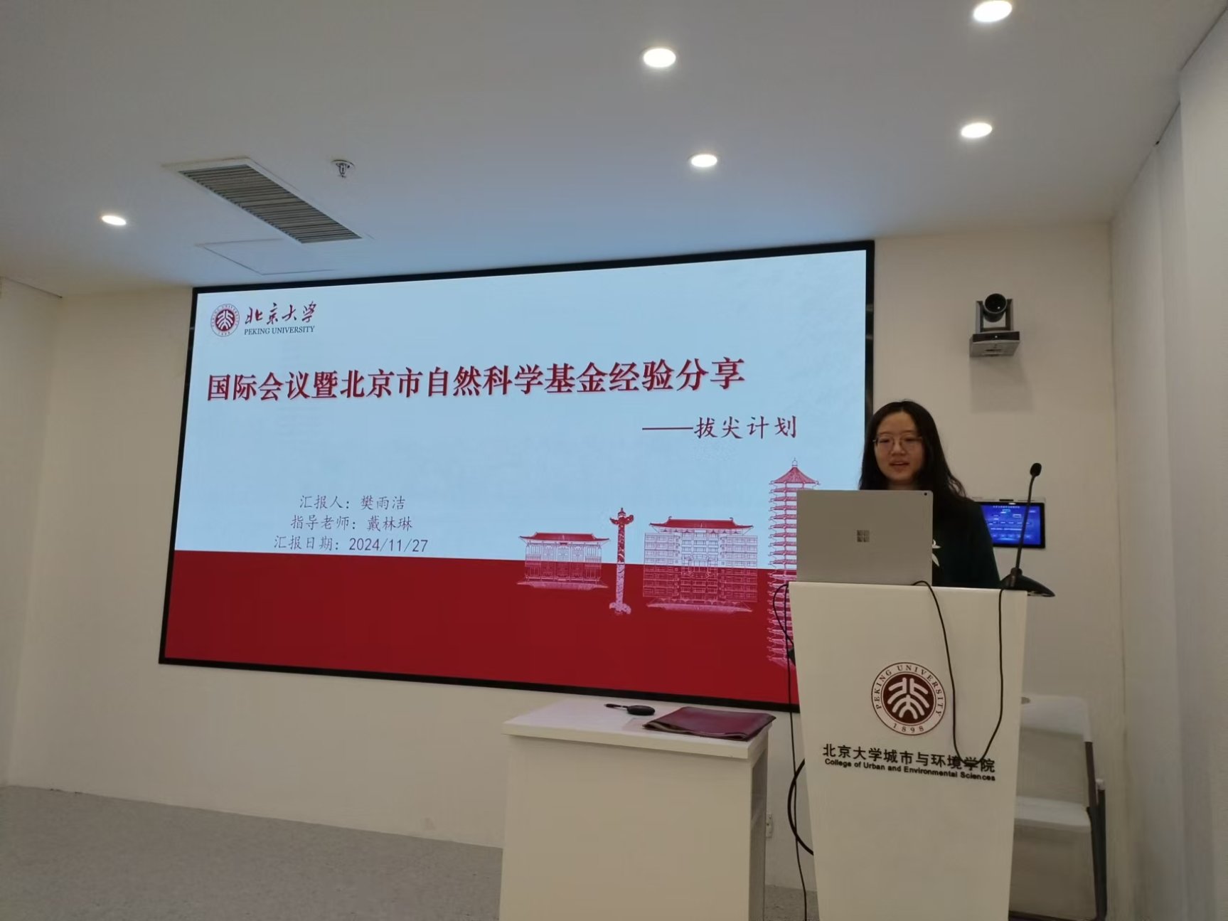 本次分享会由院长助理蒙吉军老师主持。2024年国家自然科学基金受资助者2021级生态学专业张艺凯、2024年北京市自然科学基金受资助者以及APSA亚洲规划院校国际会议参会者2021级国土空间规划专业樊雨洁、APSA亚洲规划院校国际会议参会者2021级国土空间规划专业徐嘉苗三位同学进行了分享。