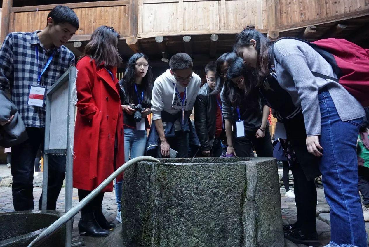 实践团成员围观土楼内的水井