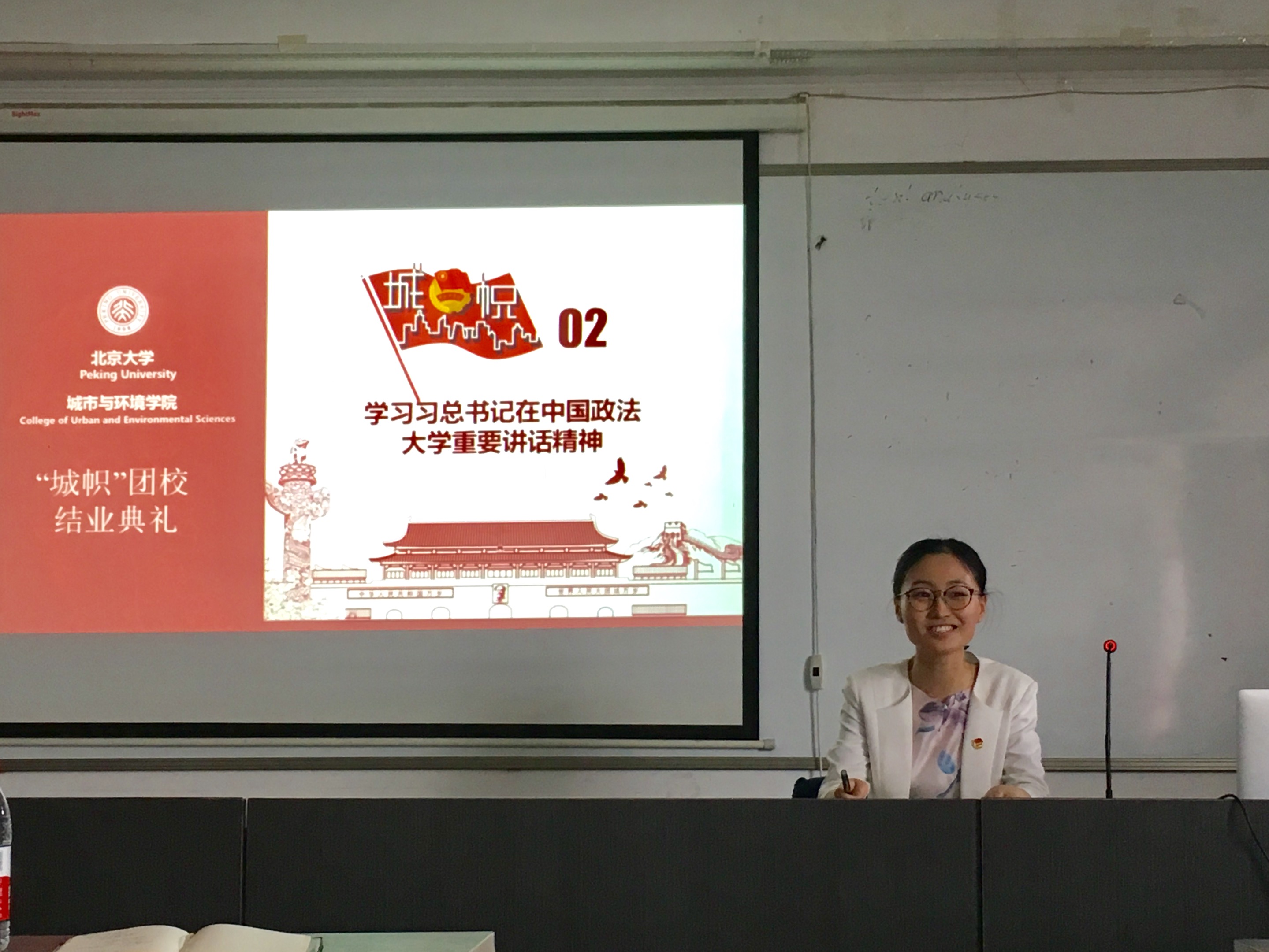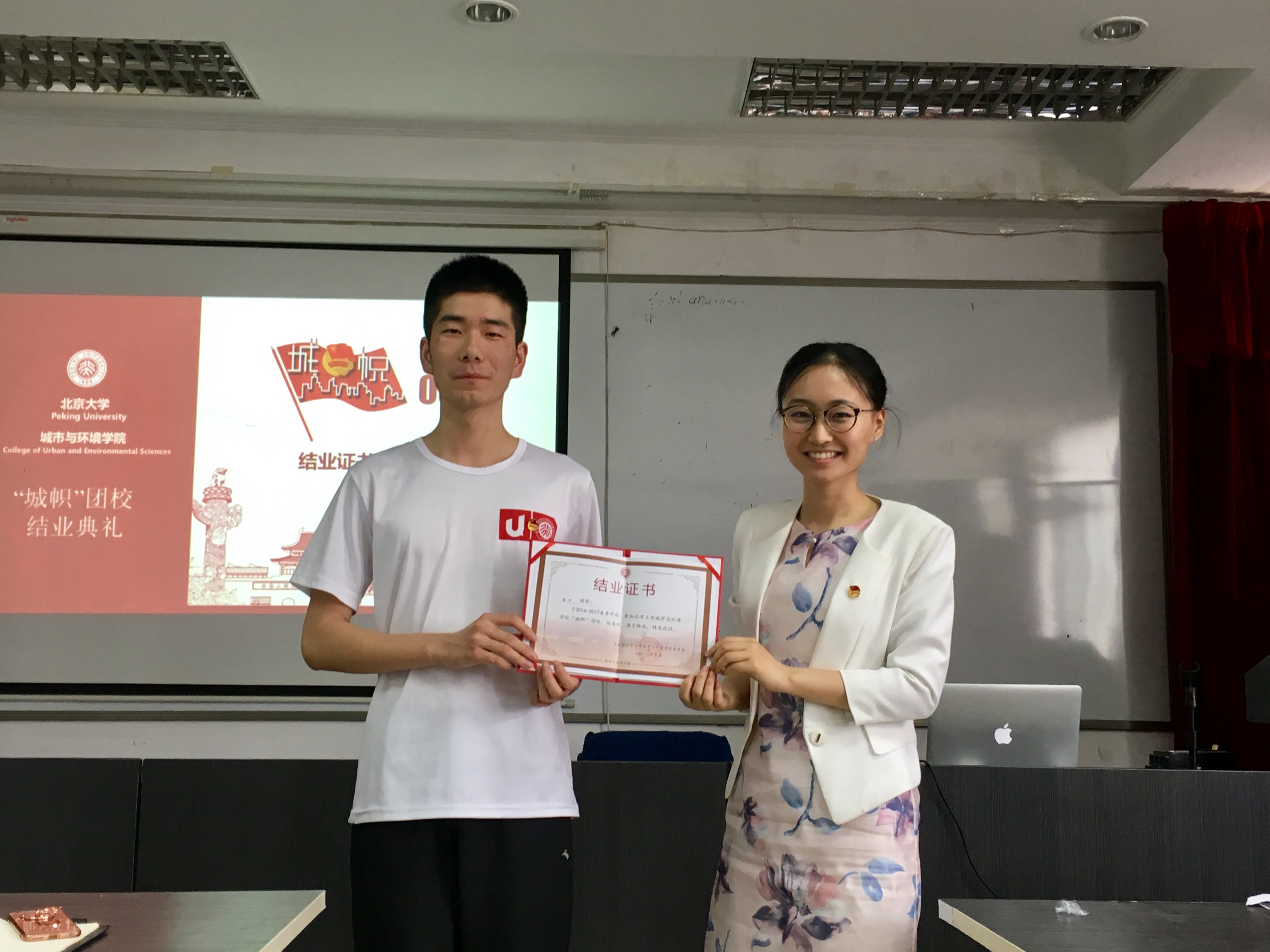 随后,2016级本科生景鹤影带领大家回顾了学院首期“城帜”团校的历程,重温团校开幕式、通识讲座、重走北京中轴线、“绿漾燕园”植树、黑豹野生动物保护站实践、“一学一做”讨论课等一系列精彩活动。2015级本科生徐帅作为优秀学员代表发言,分享了参加团校的初衷,以团校举办的各个活动为主线,畅谈自己的学习收获和心得体会,表达了自己传承五四精神、做合格共青团员的决心。最后,王宇凡老师为学员代表颁发结业证书。