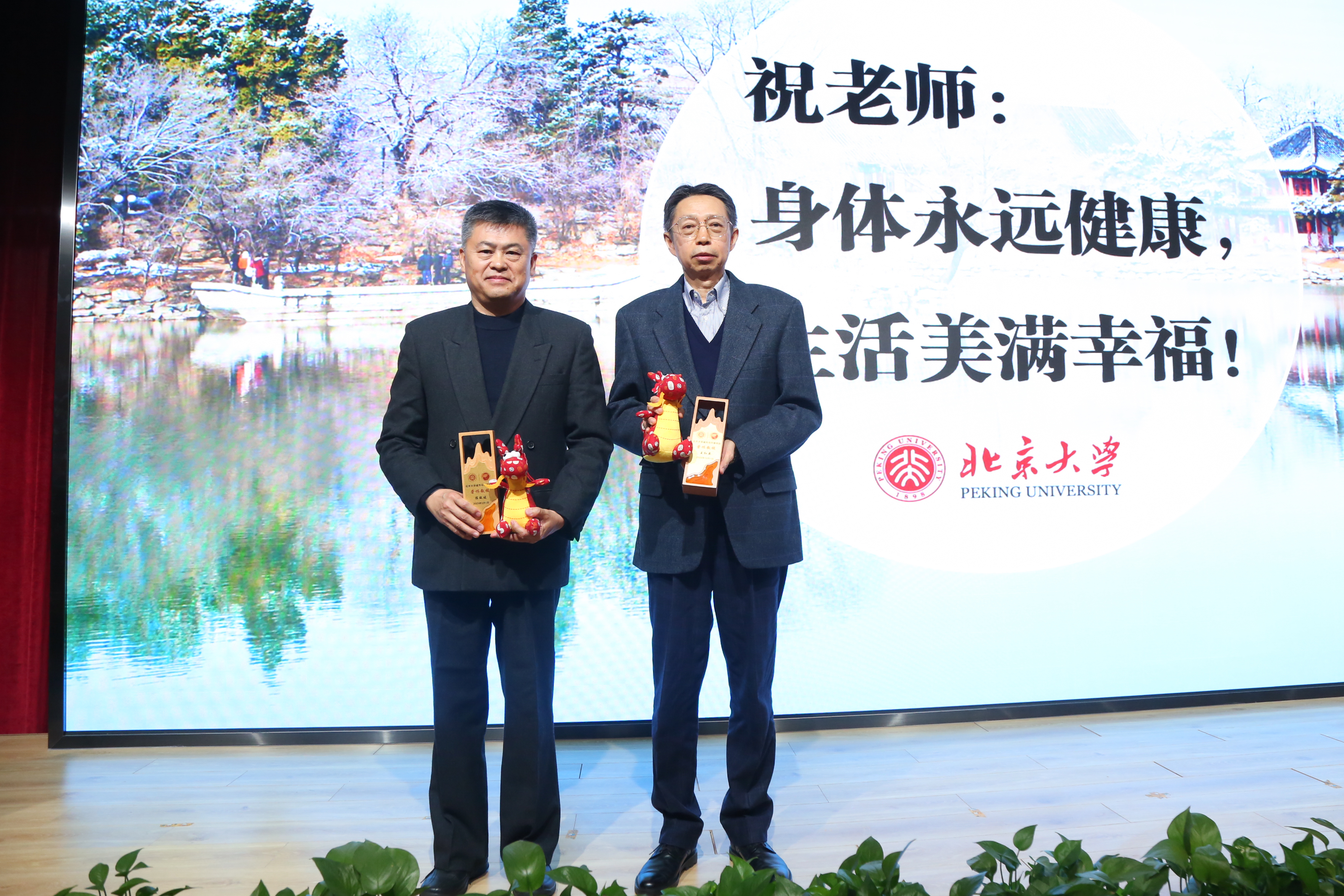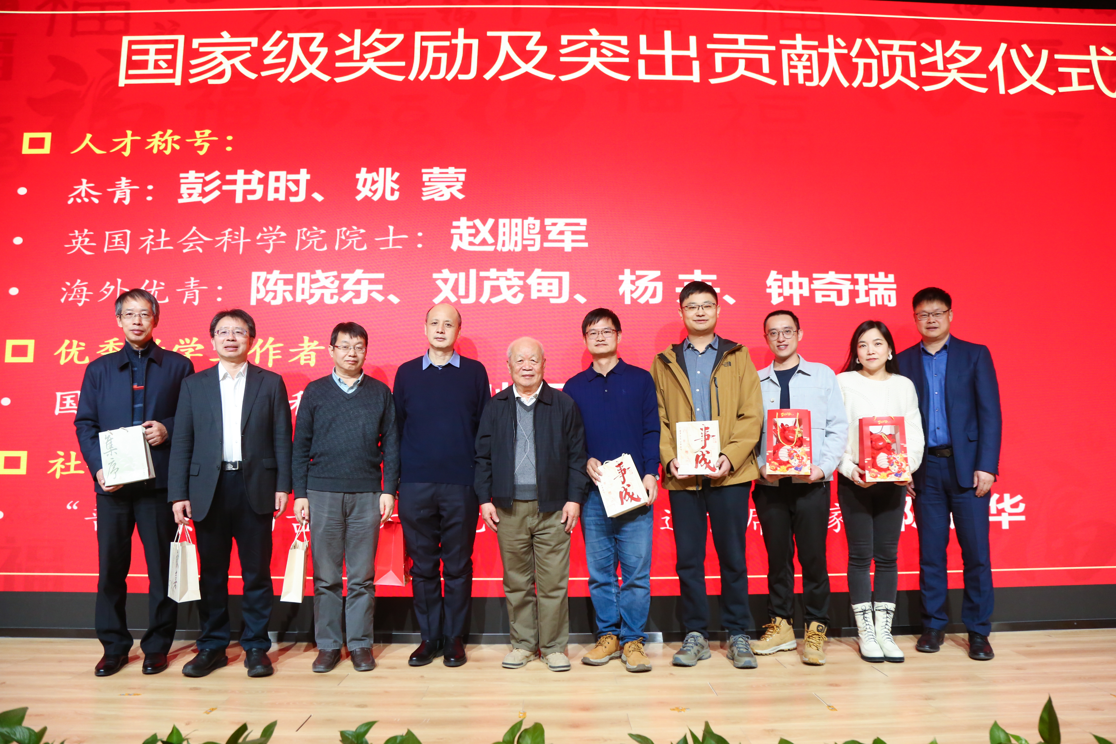参会的离退休教师代表与学院领导共同为2023年荣获国家级、省部级和校级各类称号和荣誉的老师,为发表高水平论文,以及为学校和学院做出突出贡献的老师颁奖,并送上精美小礼品。