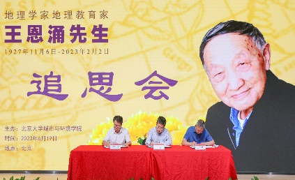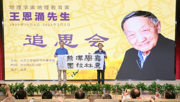 北京大学教育基金会副秘书长王勇发言,认为设立北京大学“恩涌奖学基金”能够激励更多的学子投身地理学的研究与教育事业,继承和发扬王恩涌先生的学术传统,为地理学科的繁荣和社会发展做出更大的贡献。同时该基金也是对王恩涌先生立德树人、桃李天下的铭记。