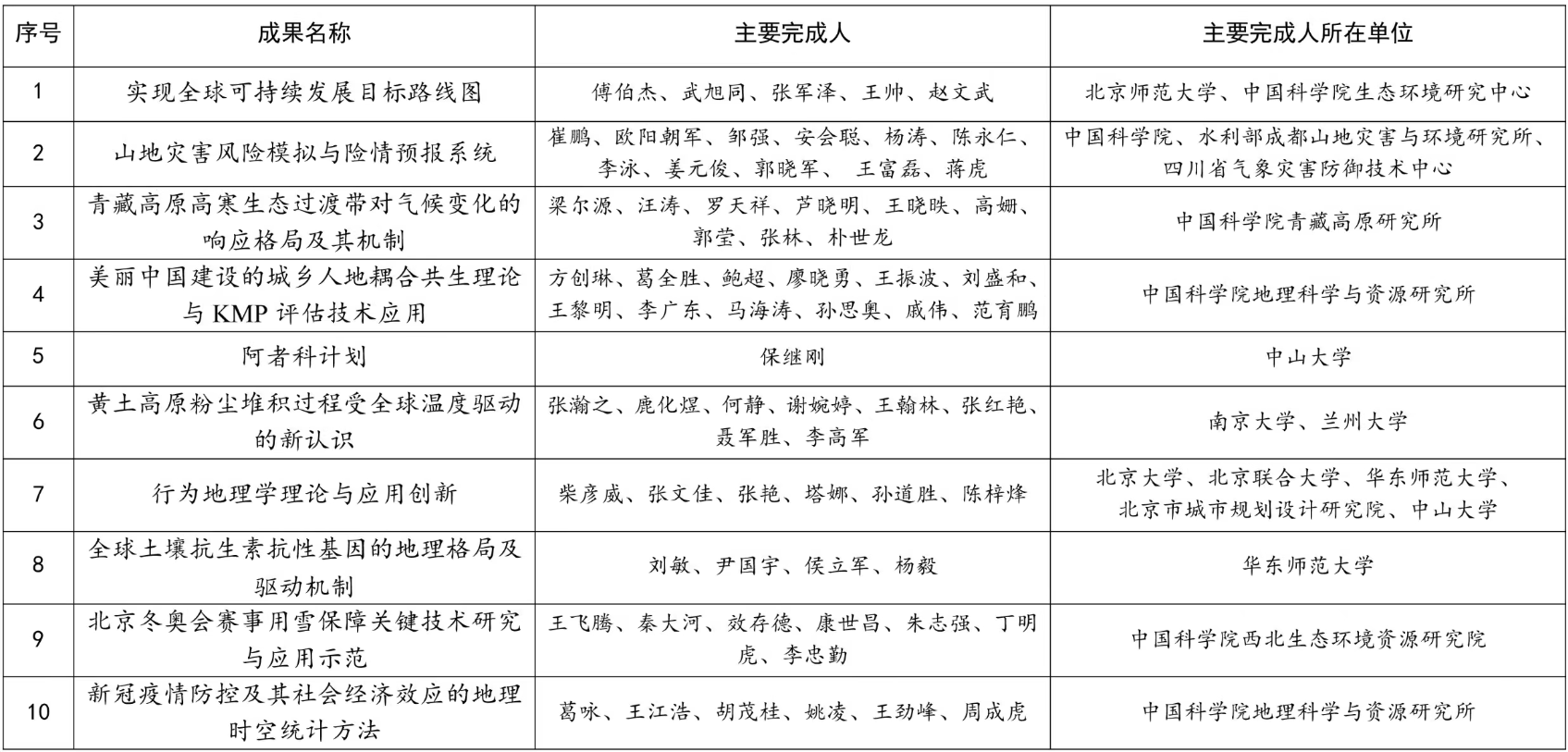2022年度“中国地理科学十大研究进展”入选成果名单
