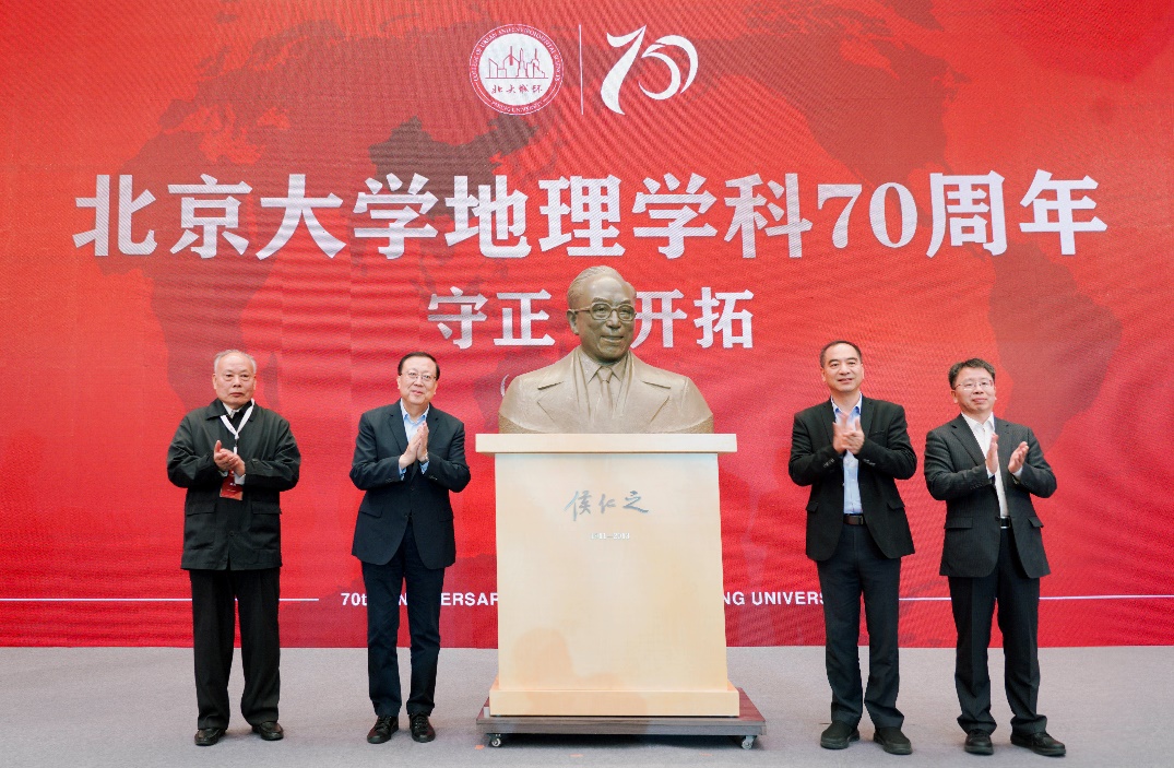 侯仁之先生是我国现代历史地理学的创立者、历史文化遗产保护与利用领域的国家级带头人,曾任北京大学地质地理系首任系主任。学院新大楼将设置侯仁之先生铜像,以缅怀和纪念侯仁之先生的卓越成就,传承其学术品格和精神。郝平、龚旗煌、侯仁之先生家属代表侯方兴及贺灿飞共同为铜像揭幕,中国地理学会副理事长兼秘书长张国友、中国城市规划学会常务副理事长兼秘书长石楠,侯仁之先生故友、北京大学原副校长郝斌以及侯方兴分别致辞。