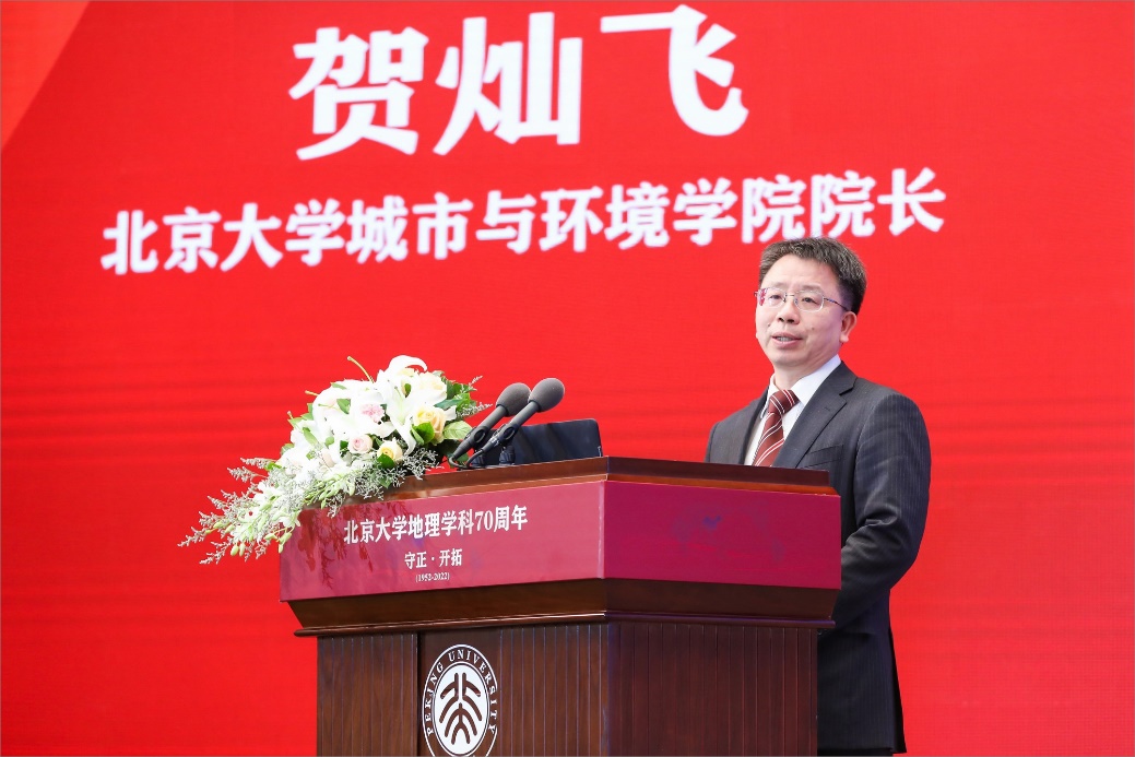 北大城市与环境学院院长贺灿飞教授作主题报告,介绍了北大地理学科的历史沿革、发展历程和未来展望。他指出,70年来,北大地理扎根中国大地,建设世界一流学科,培养世界一流人才,一代代青年骨干赓续前辈精神,开拓地学理论发展,创新科技应用成果,服务重大战略需求,解决全球环境实际问题,实现人民美好生活需要。立足新的发展阶段,北京大学地理学科将依托学校综合学科优势,大力开展“双一流”建设放权改革,搭建全球地理学术交流平台,构建多元化国际合作体系,为解决全球气候环境问题、实现“双碳”战略、推动生态文明建设、优化国土空间开发保护格局、促进可持续发展提供新的方案,实现更高质量的发展。