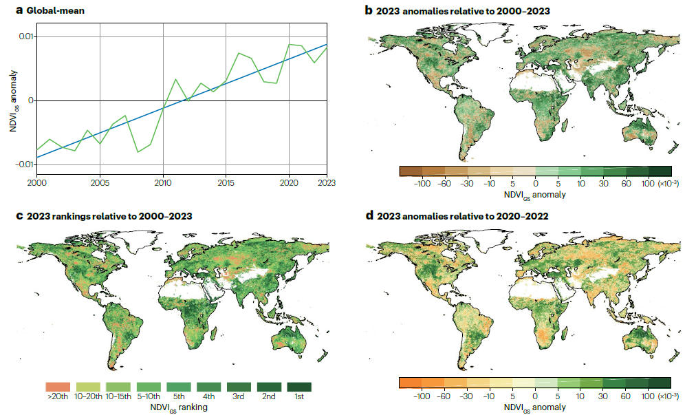 朴世龙院士团队应邀在《Nature Reviews Earth & Environment》发文揭示2023年全球植被生长状况