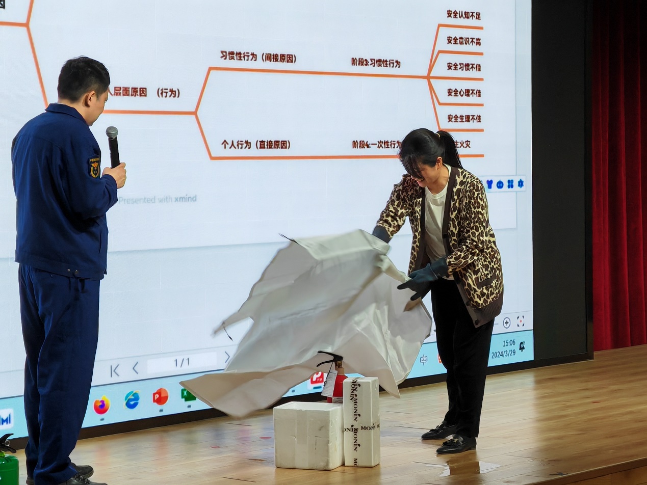 海淀消防救援支队一级消防指挥员何健首先以真实案件为例,讲解了消防安全的理论知识,包括潜在的安全隐患、火灾发生的响应行为和消防法律法规等。在听完这段关于消防安全的理论知识讲解后,大家纷纷表示受益匪浅。有的人开始反思身边是否存在潜在的安全隐患,比如电线老化、易燃物品摆放不当等问题,并打算进行检查和整改。与会人员对火灾发生时的应对行为有了更为清晰的认识,知道如何在紧急情况下保持冷静,选择正确的逃生路线,以及如何使用消防器材进行初期火灾的扑救。