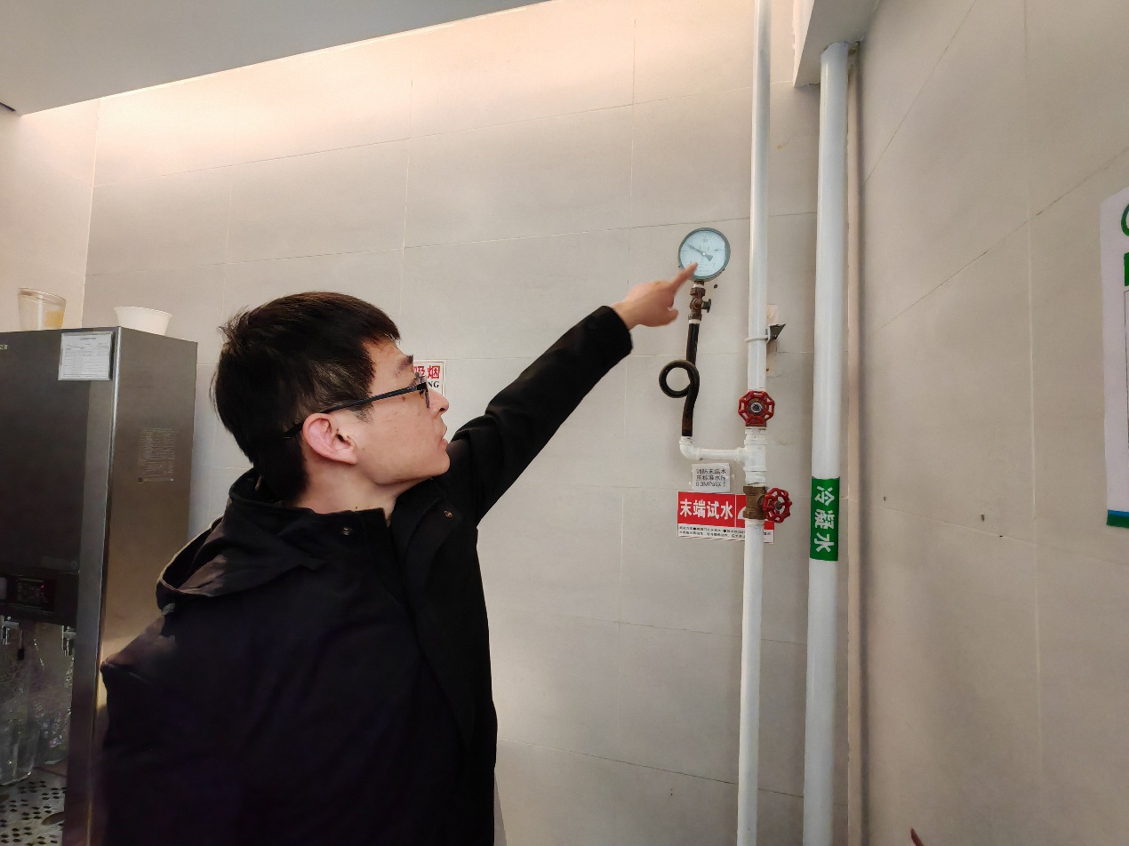 在何健的悉心指导和热情带领下,与会师生了解各种消防器材的用途和使用方法并进行了实操演练,如消防水源和消防水管、灭火器、消防栓、烟雾探测器等。