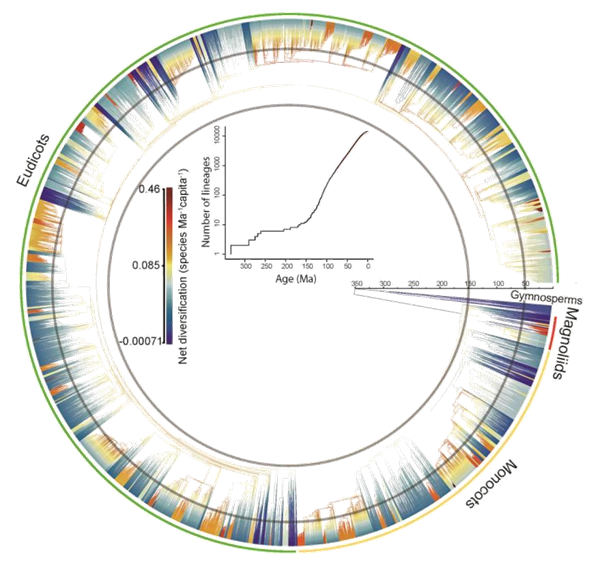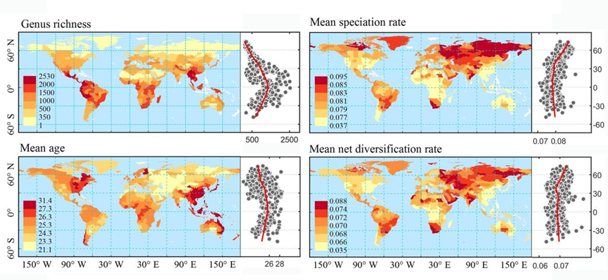 【成果】北京大学宏观生态学研究组揭示全球被子植物多样化速率的时空格局